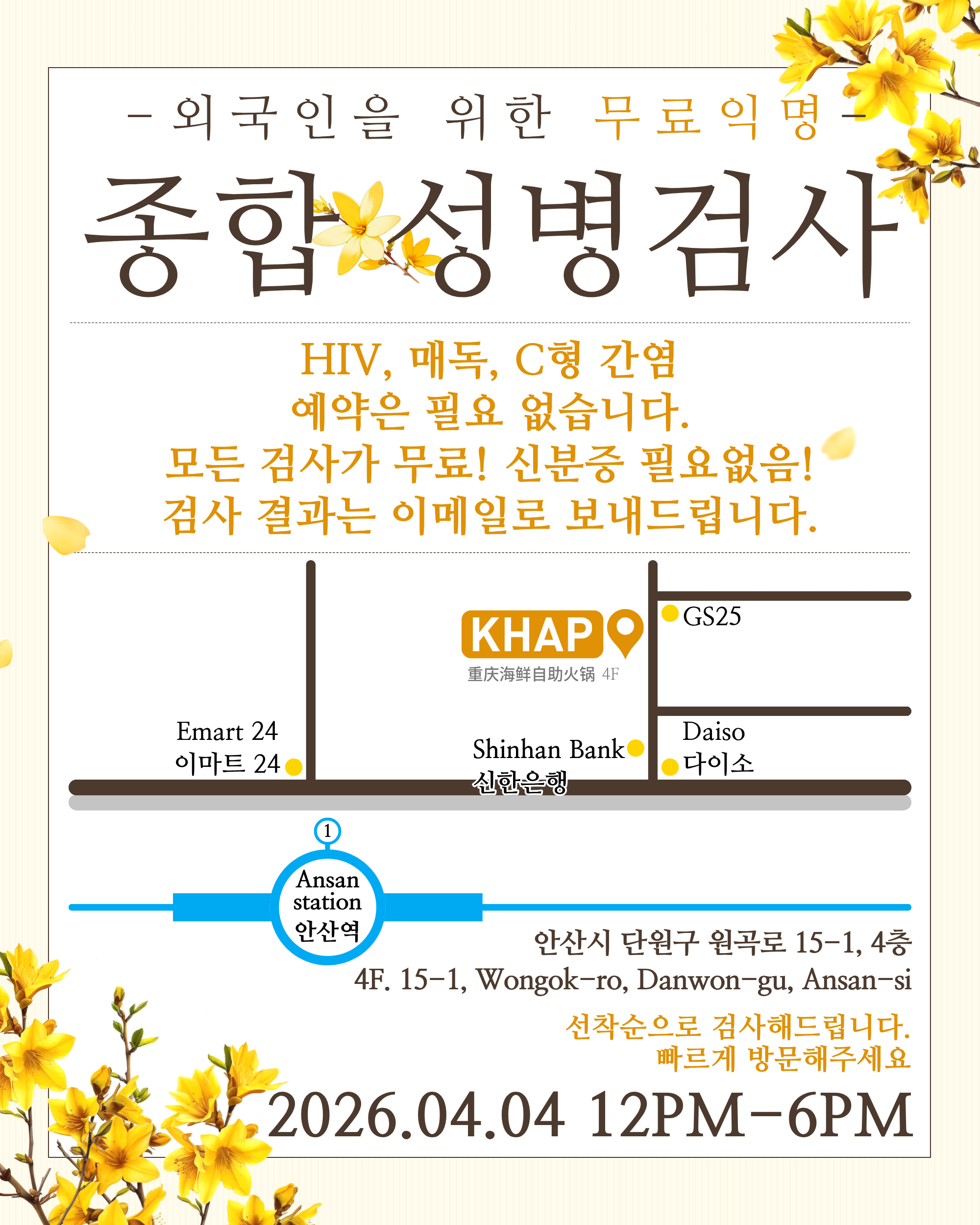 [STI Test 종합성병검사] 4/4 @Ansan 안산 KHAP Center