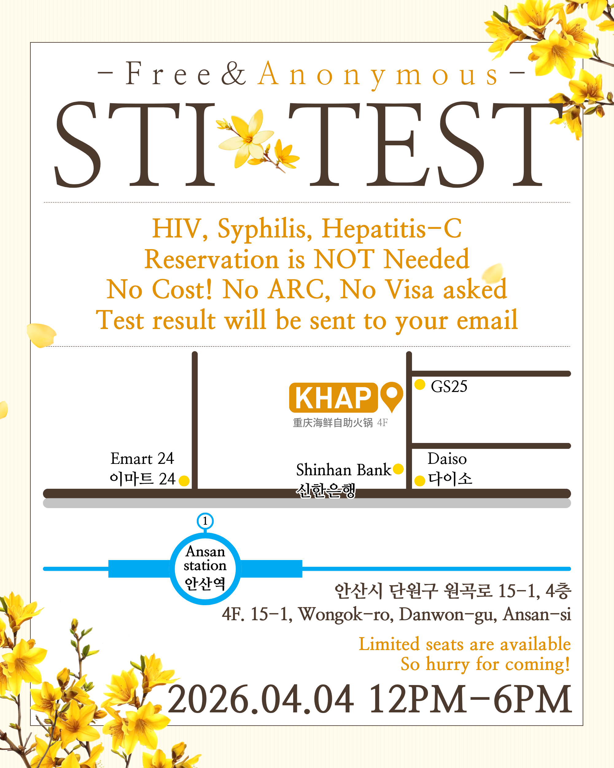 [STI Test Event 종합성병검사 행사] 3/28 @Jongro 종로