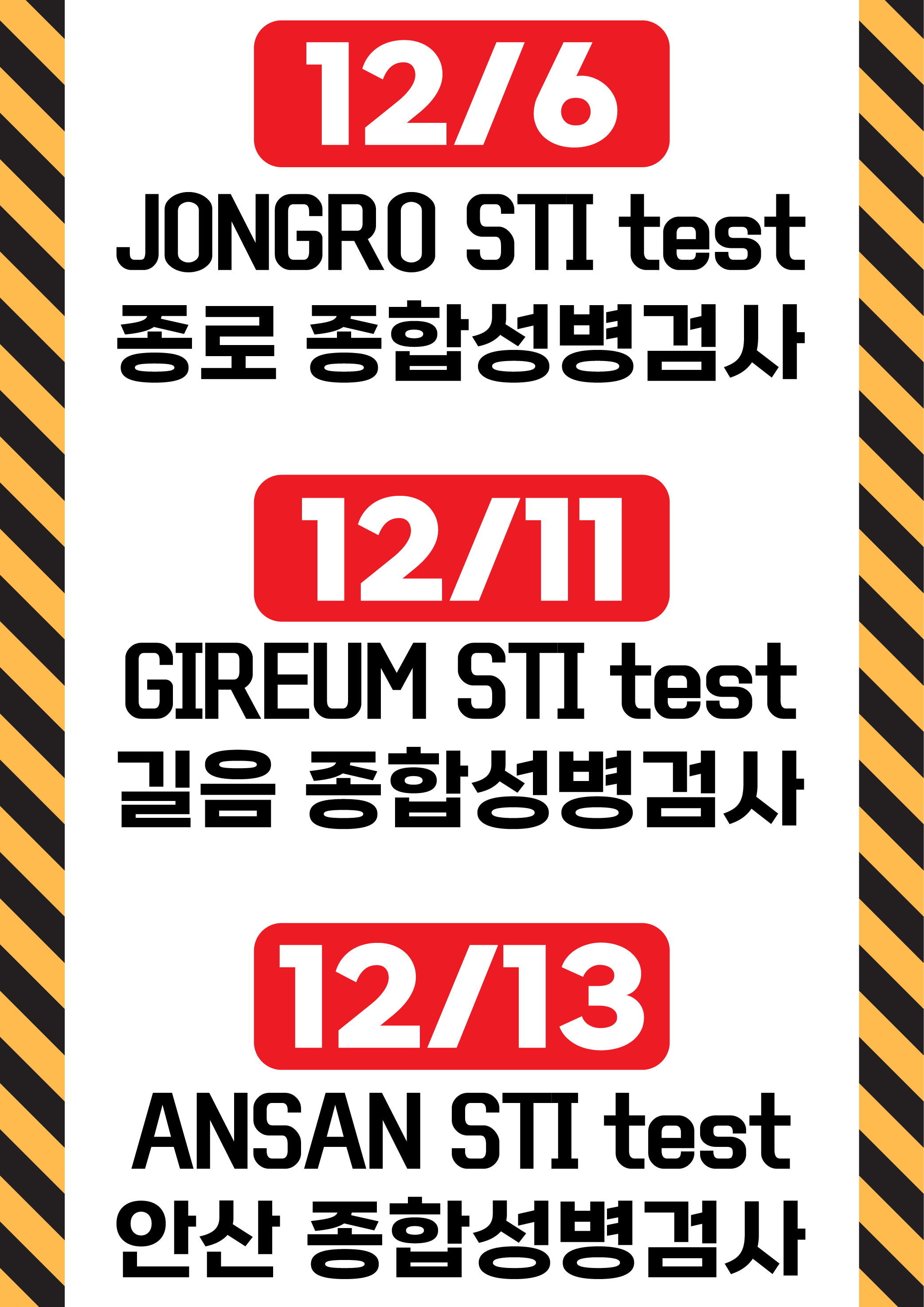 [STI Test 종합성병검진] 12/13 @Ansan 안산 KHAP Center